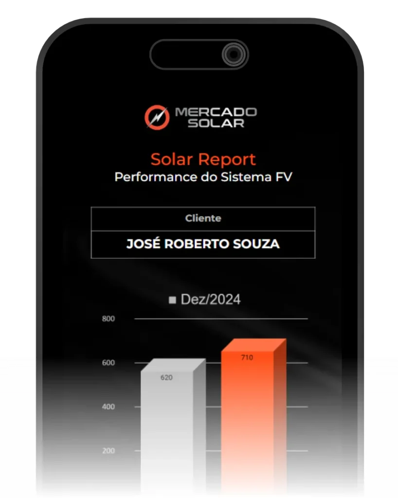 Acompanhe o desempenho do seu sistema fotovoltaico periodicamente, recebendo um relatório completo para você visualizar na tela do seu smartphone.